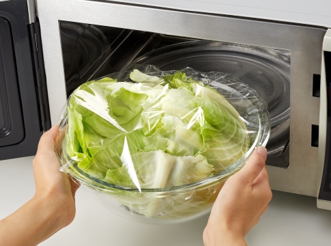 - 容器にラップをかける際は、ゆったりと余裕を持たせてかける。蒸気によってラップが押し上げられ、破れることがある。