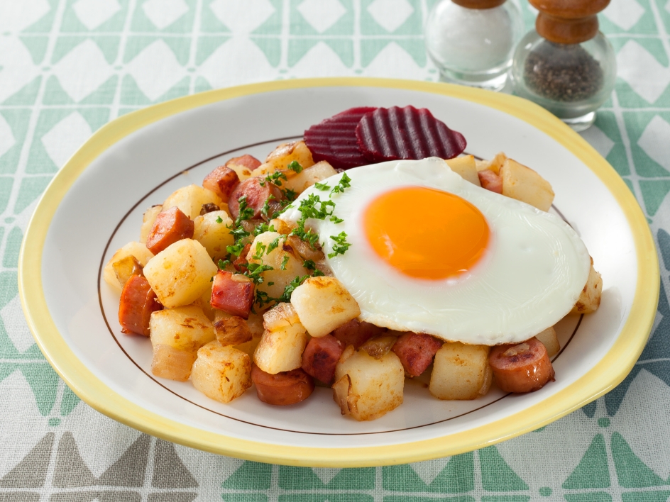 スウェーデンの伝統的家庭料理。半熟の卵をくずし、からめながらいただきます。
