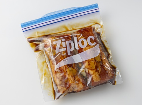 ダブルジッパーで密封性が高いから漬け込み調理にぴったり!バッグ内の空気を抜けば少量の調味液でまんべんなく漬けられ、保存の際も省スペースです。